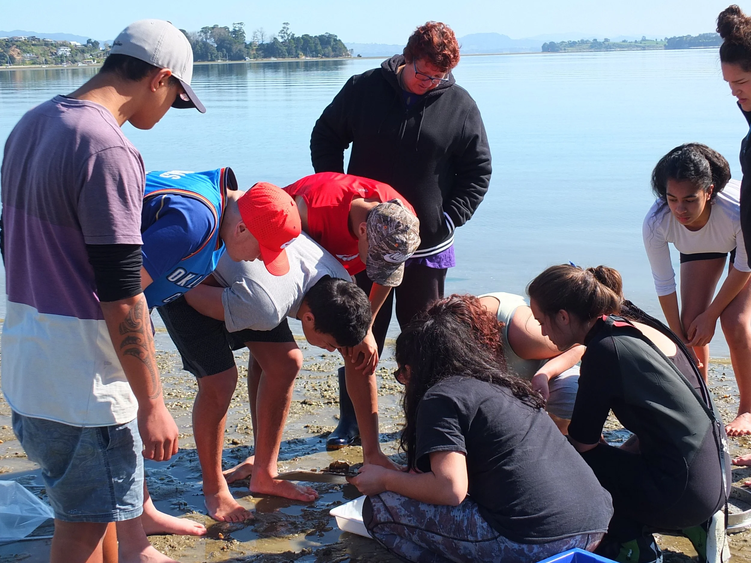 Community group conducting baseline environment surveys prior to pipi translocation, Tauranga Harbour - Photo by Manaaki Te Awanui